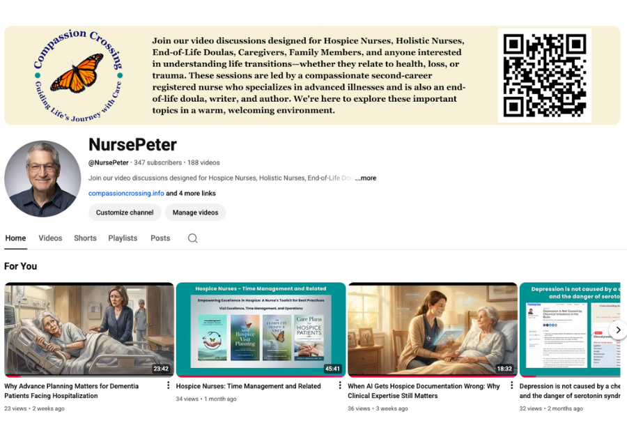 Through Compassion Crossing, LLC, Peter offers practical support, including advance care planning, guidance on hospice and palliative care, legacy projects involving photography and videography, medication reviews, and vigil planning. He conducts on-site visits in Madison County, Kentucky, and provides virtual support nationwide. His goal is to turn fear into peace through education and compassionate presence. Guided by his faith in Christ Jesus, Peter brings hope during challenging transitions.